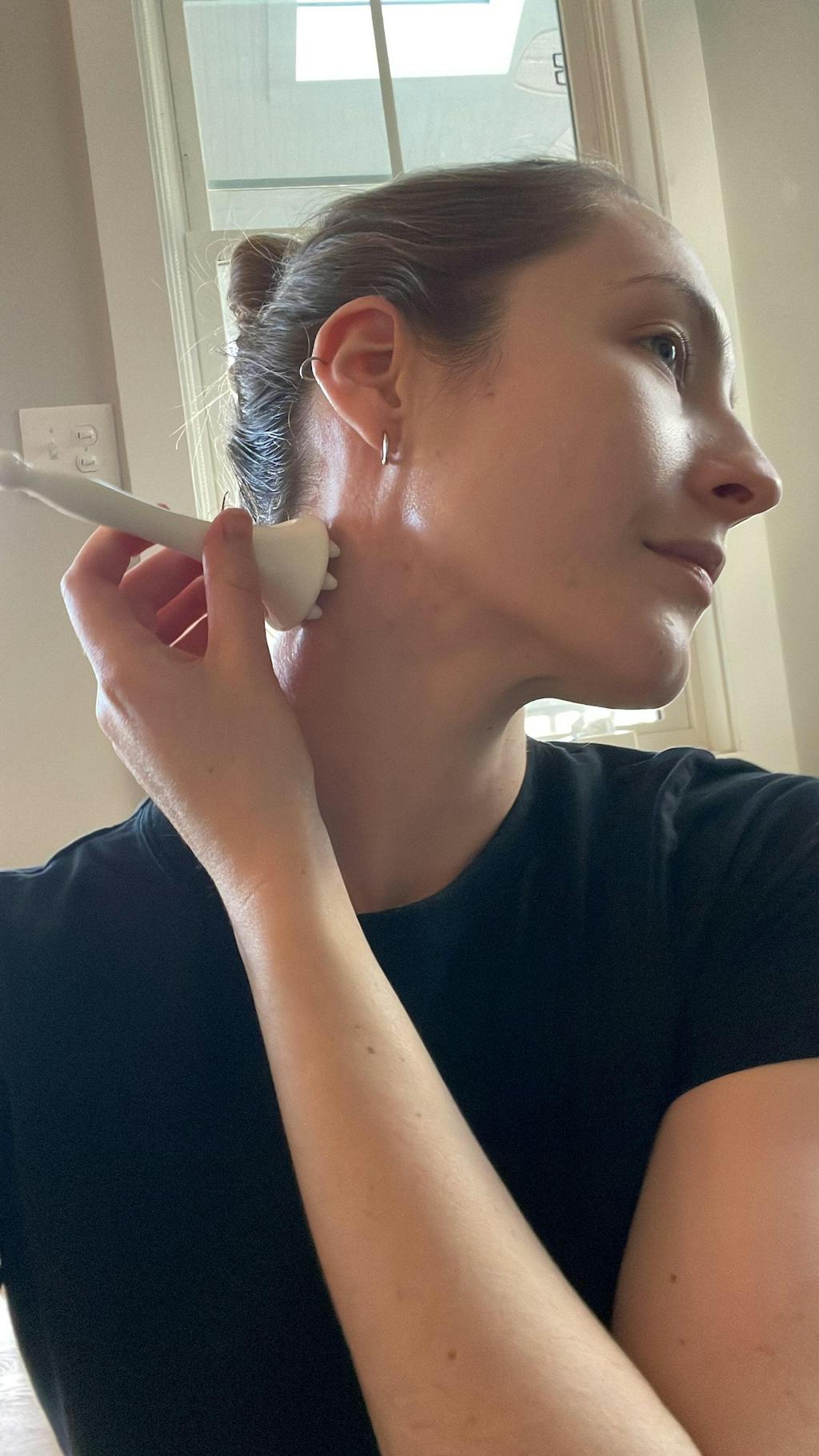 This is perfection! The ceramic material feels cool and solid and beautiful to hold. It is so effortless to use that it makes my beauty routine feel so luxurious but also not a chore at all! I also love to use it on the base of my head for tension headache relief.